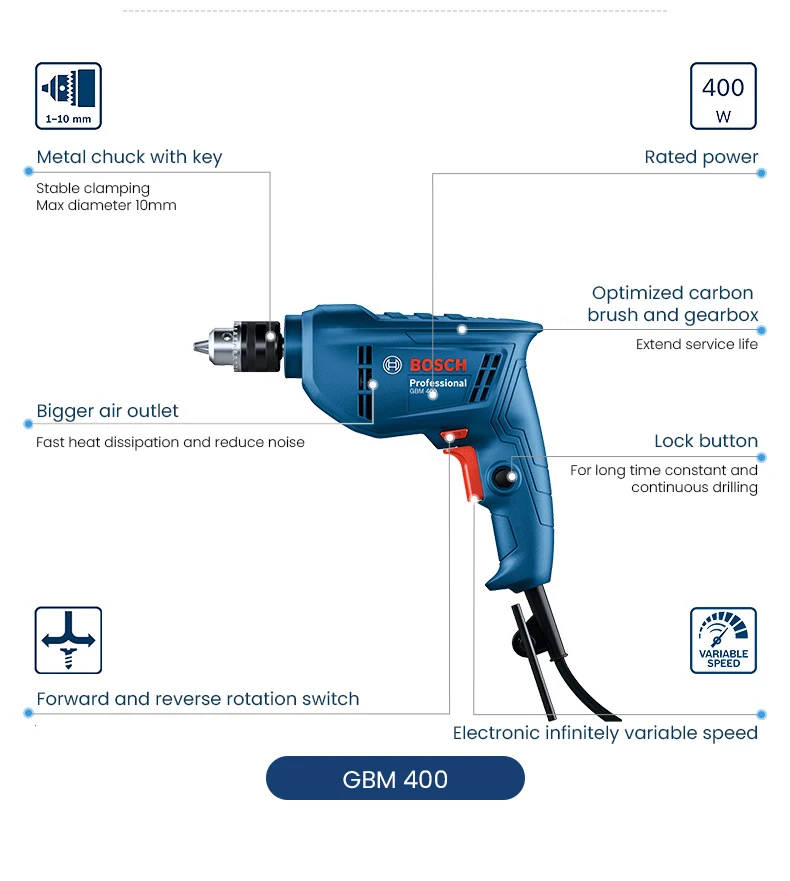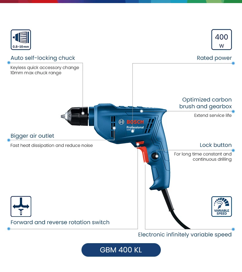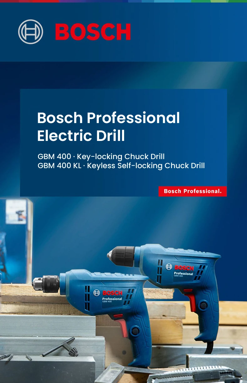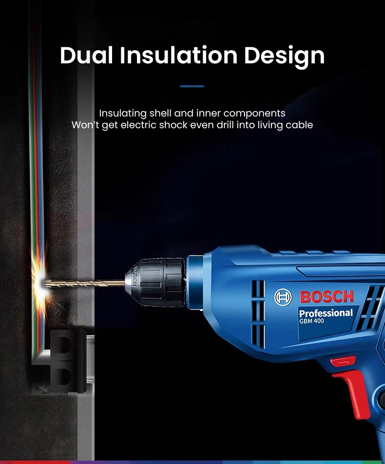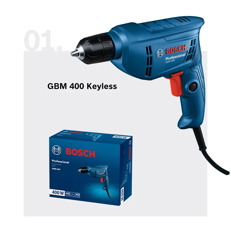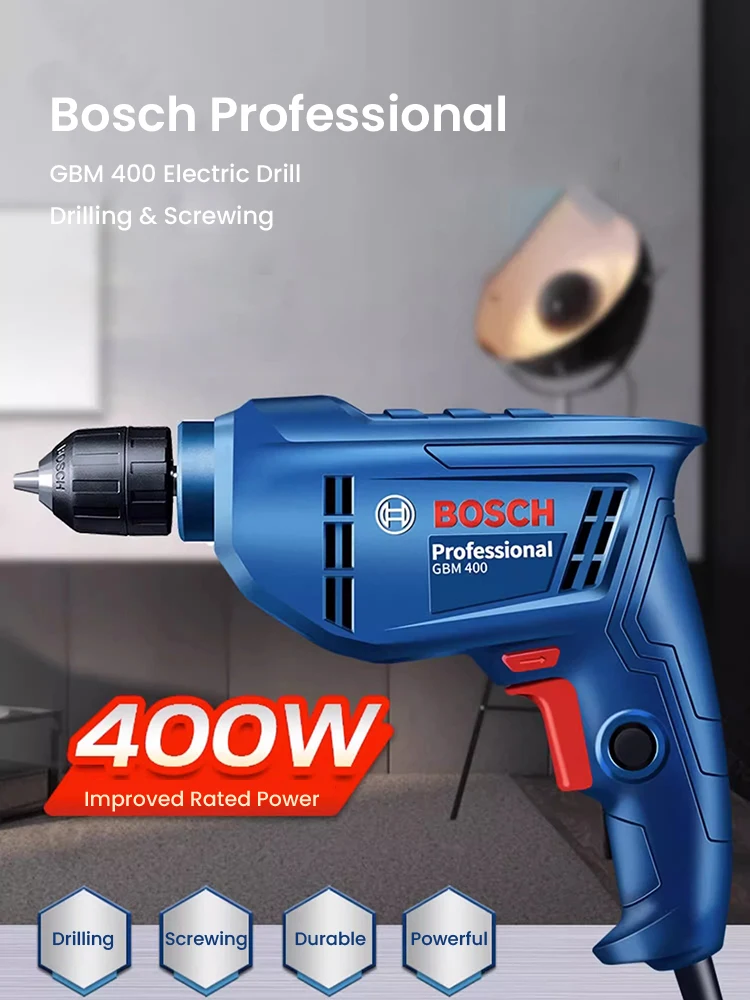 Chave de fenda elétrica 220V, BOSCH GBM 400 Broca elétrica profissional, motor de velocidade variável 400W, máquina de perfuração de telhas de parede