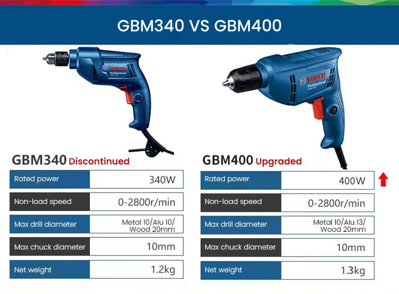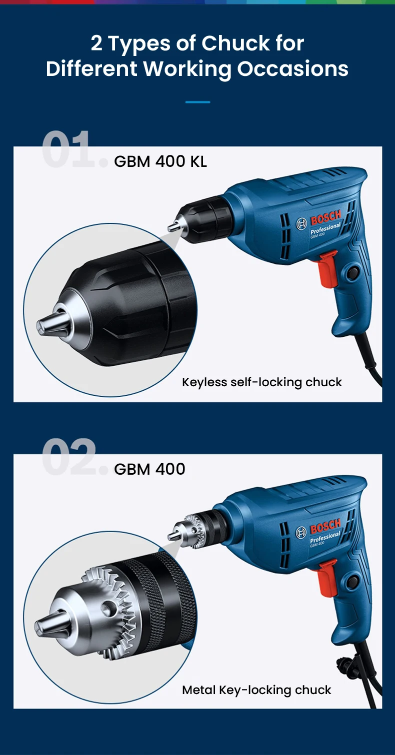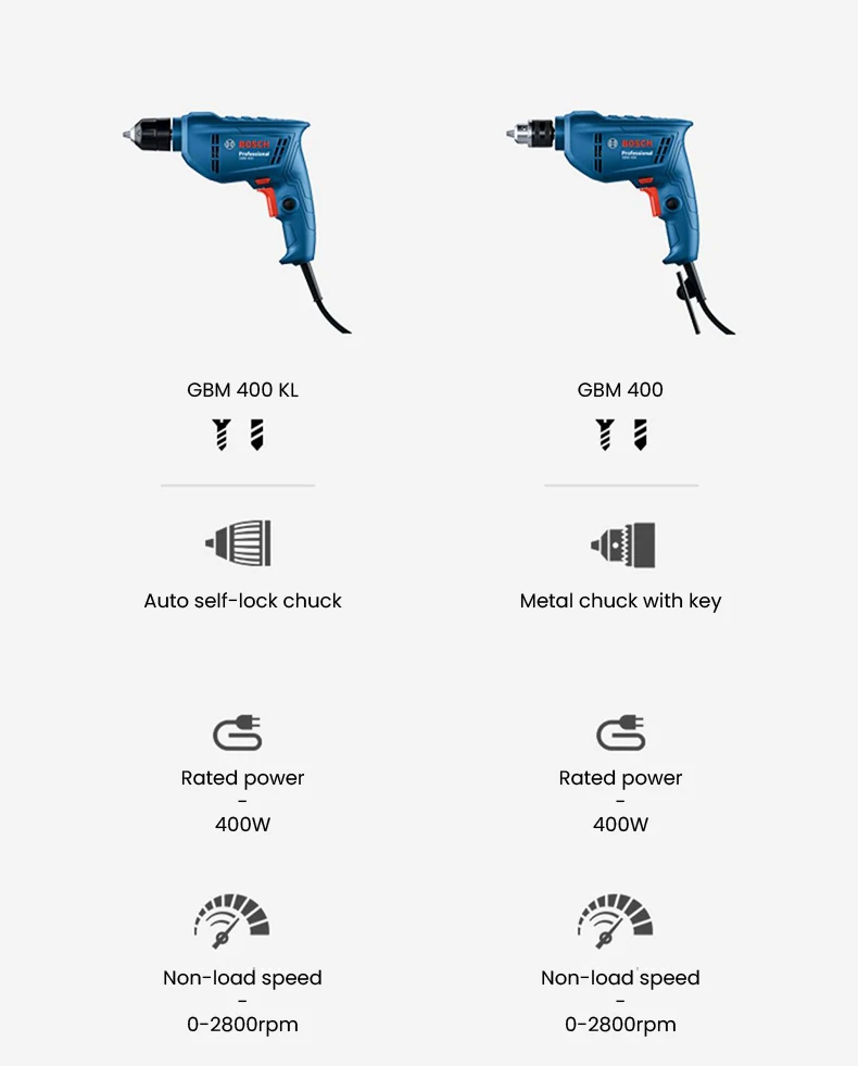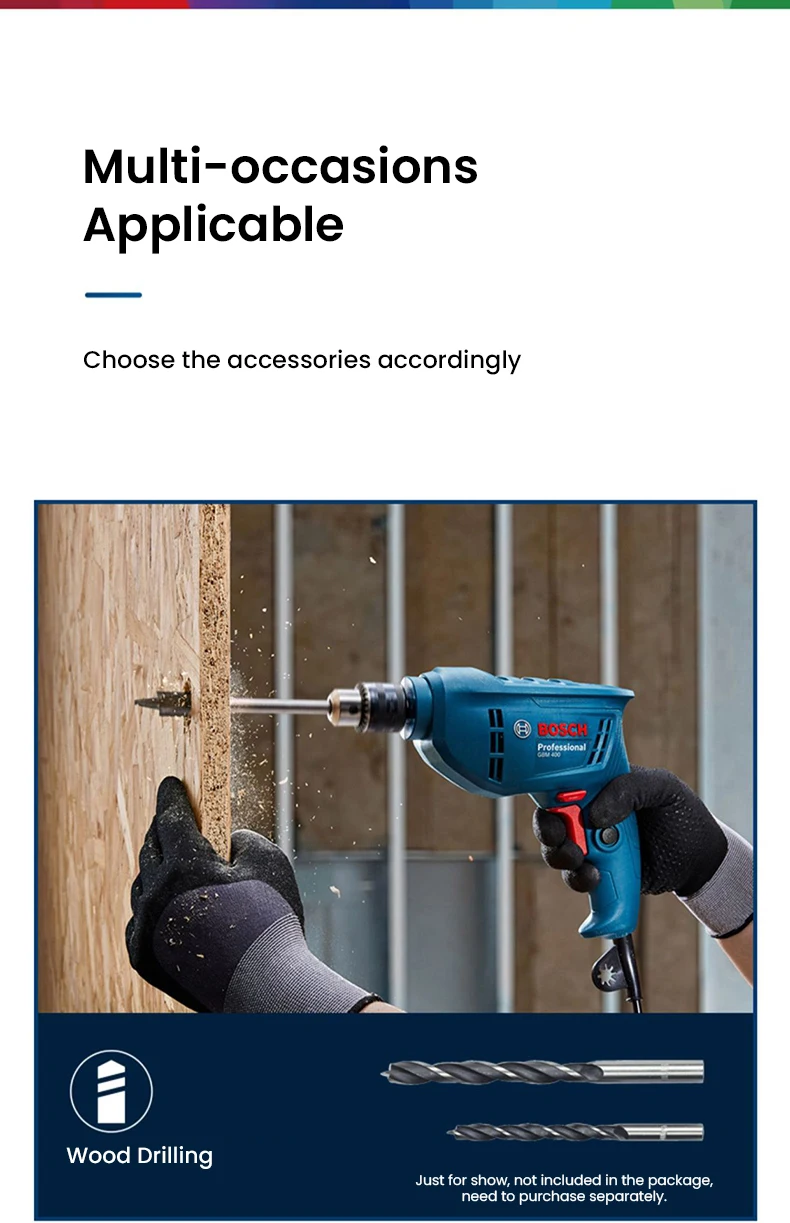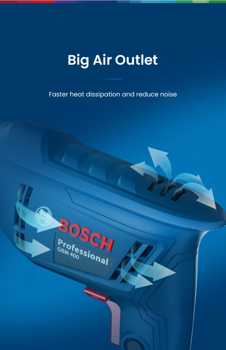 Chave de fenda elétrica 220V, BOSCH GBM 400 Broca elétrica profissional, motor de velocidade variável 400W, máquina de perfuração de telhas de parede