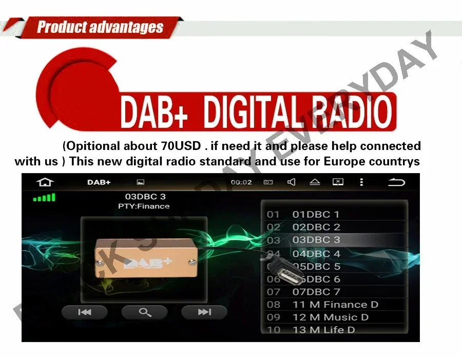 Android 14.0 ! Two Din Car DVD Player+QUAD / Eight Core + DDR3 2GB/4GB / 6GB / 8GB Flash + ROM16GB /32GB/64GB/128GBMemory + 1024*600 HD Screen + Capacitive Screen +GPS Navigation + iPhone/Android Mobile Phone Mirror link + Bluetooth Phone call/phonebook/music player + FM/AM + RDS +WIFI + USB DVR function+ Europe DAB Function +OBD2 fuctions+4G USB Host Support+1080P Vedio Play +online Map + carplay fuctions and so on