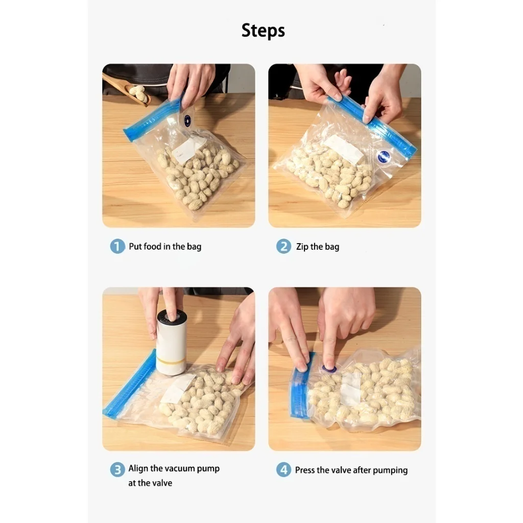 Conserve seus alimentos por muito mais tempo com a bomba de sucção a vácuo e os sacos de armazenamento reutilizáveis. Ideal para manter carnes, frutas, legumes e snacks frescos, protegidos contra germes, fungos e bactérias. Pode ser armazenado em geladeira ou freezer, sem perda de sabor ou valor nutricional.