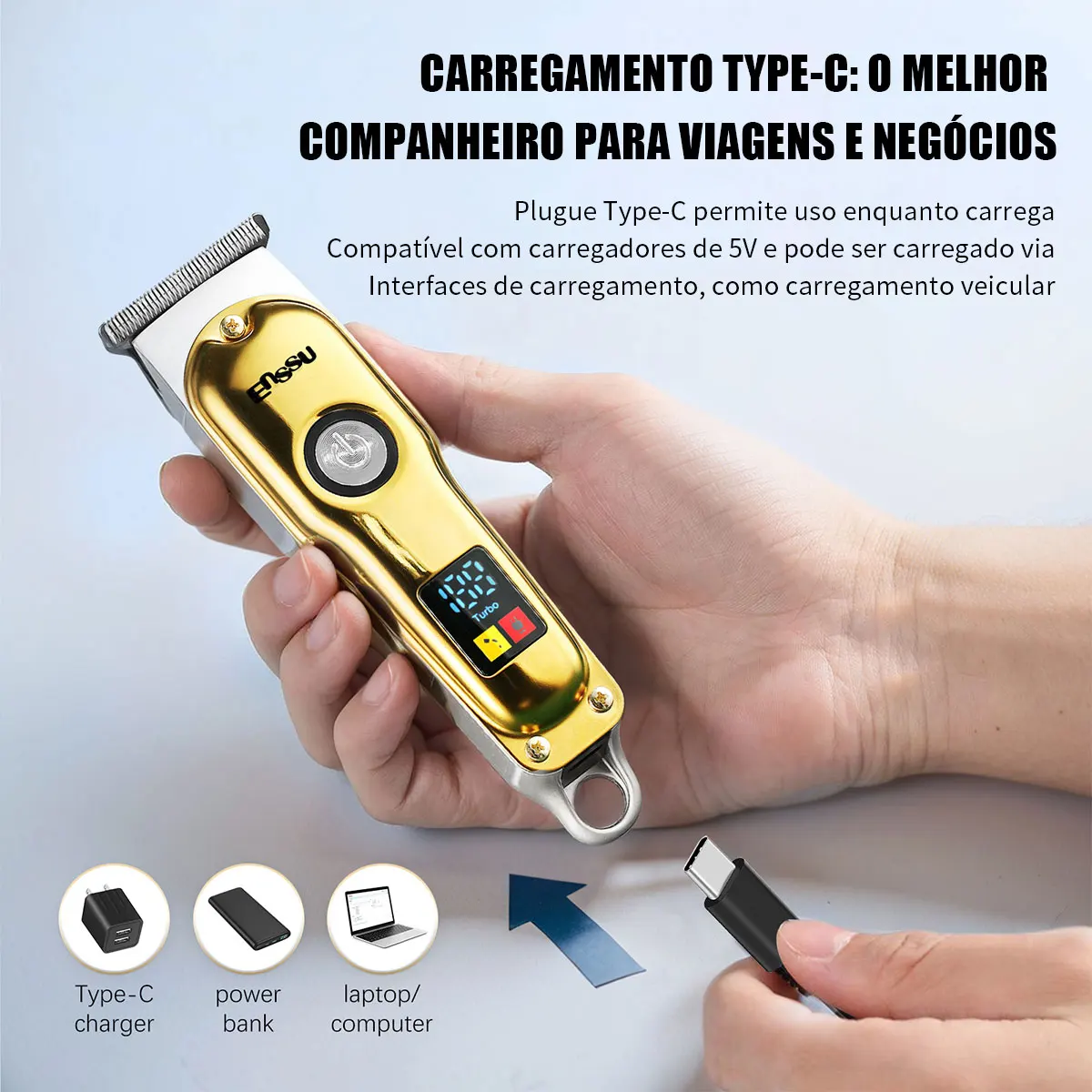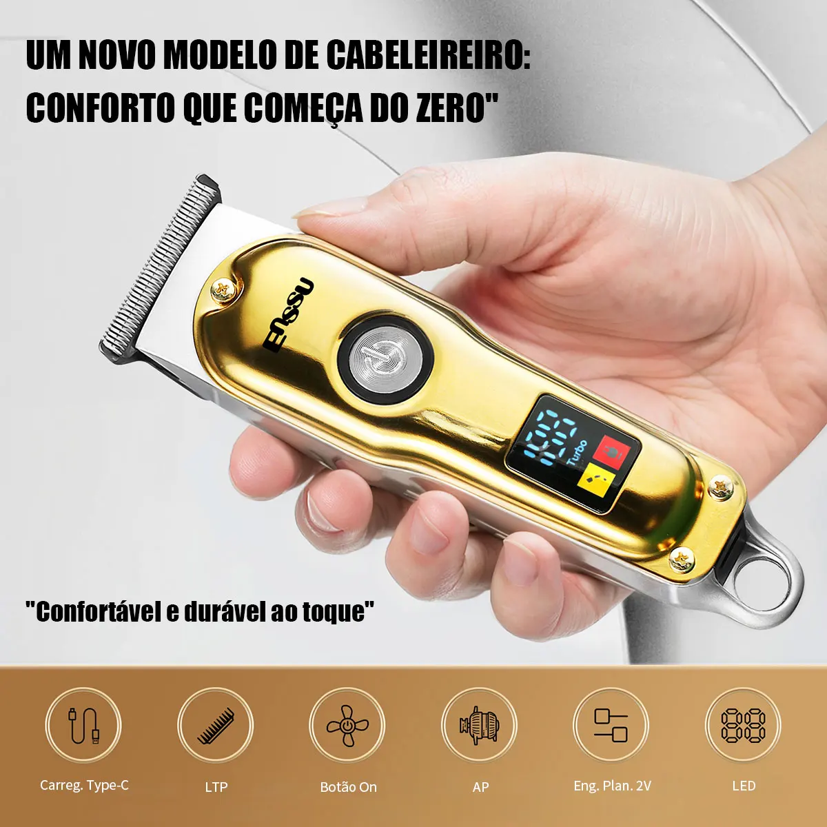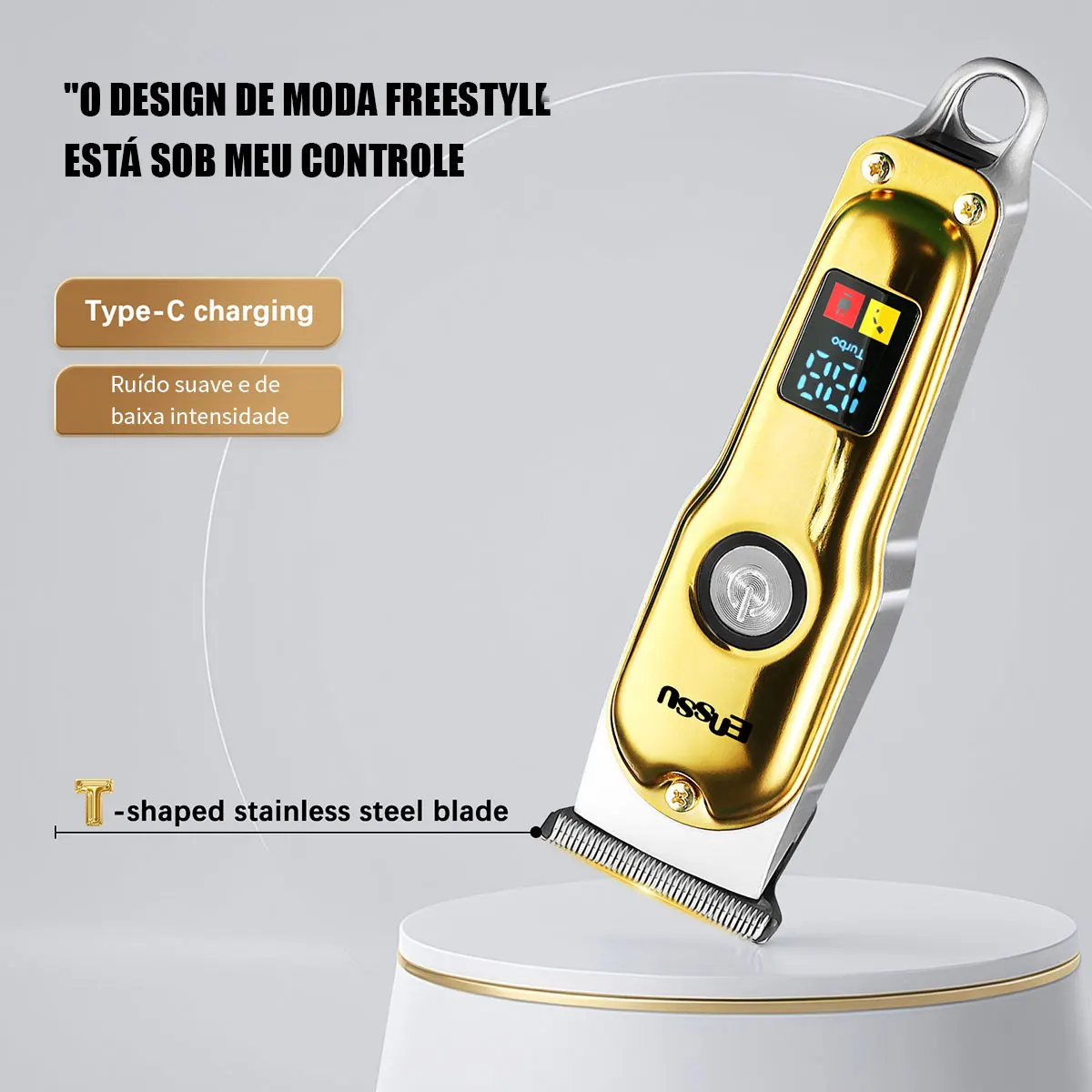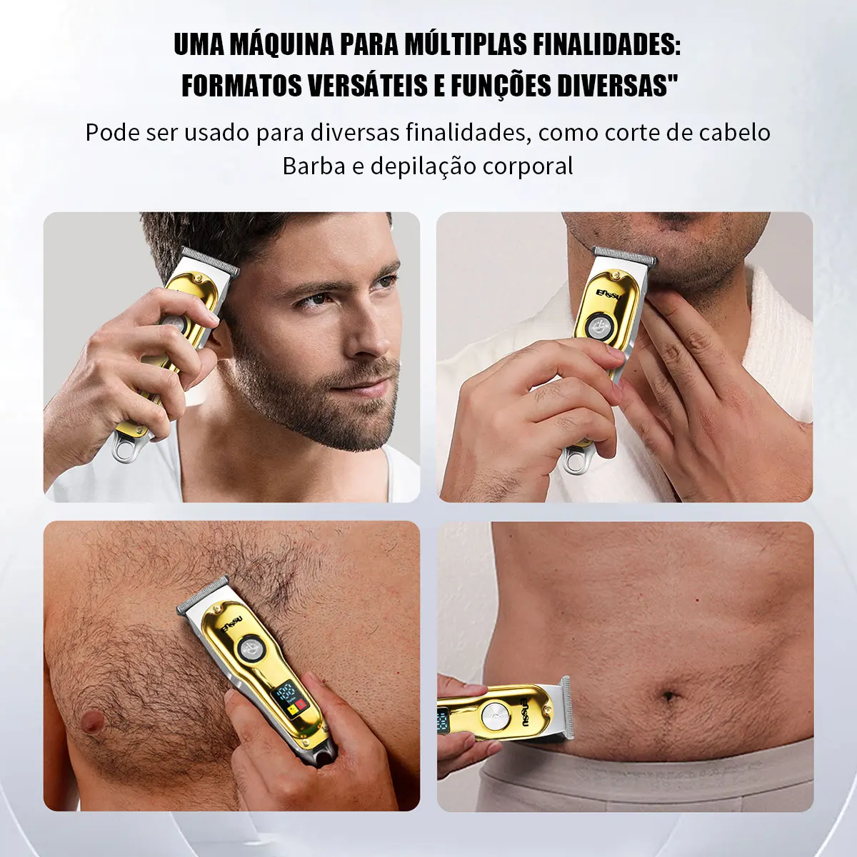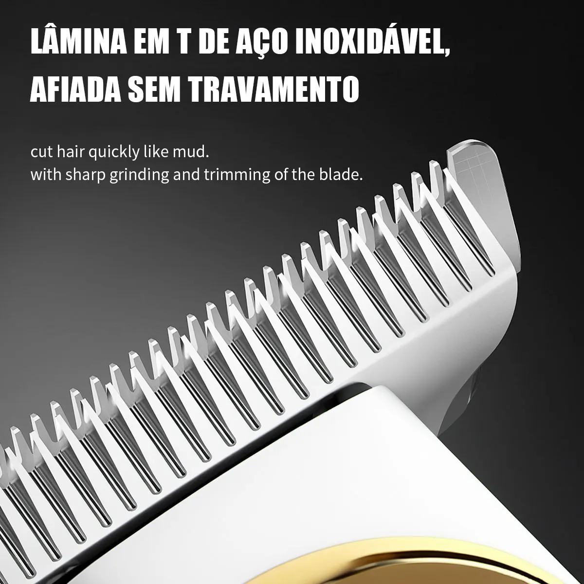 – Cabeça de lâmina de aço inoxidável em formato T: Permite não apenas cortar cabelo, mas também barba e pelos corporais, oferecendo múltiplas funções em um único aparelho. ✂️
