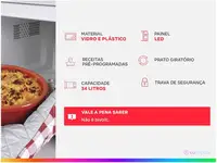 Funções – Receitas pré-programadas: – Pipoca- Brigadeiro- Arroz- Batata- Pré cozinhar feijão- Fritar ovo