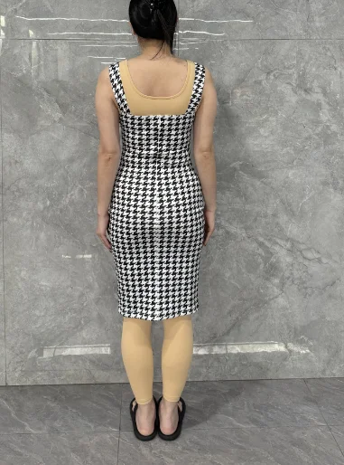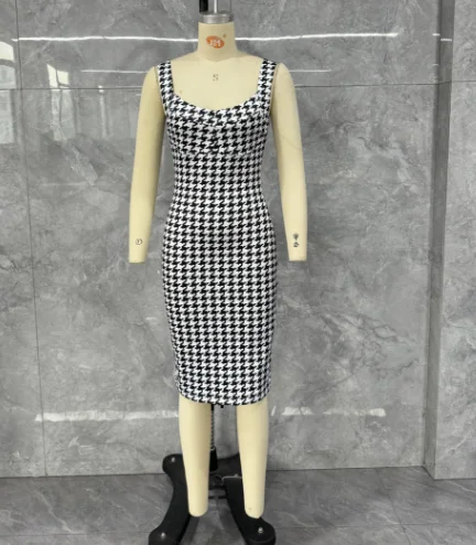 Sexy Women's Dress Summer Fashion Strap Skirt Houndstooth Print U-Neck Slim Fit Sleeveless Sexy Midi Dress Women's Bodycon Dress