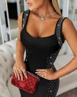 Sexy Women’s Party Dresses Summer Sexy Suspender U-Neck Sleeveless Rhinestone Slim Fit Sexy Midi Dress for Women Bodycon Dresses